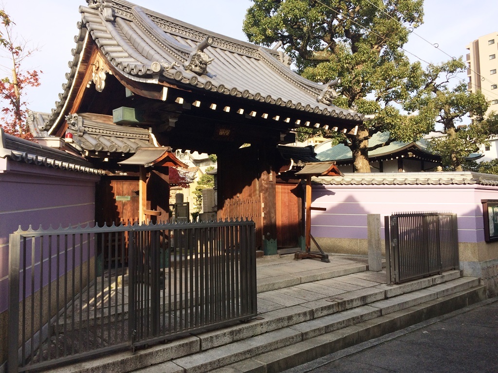 壽法寺は、江戸時代初期に開かれたと伝えられる浄土宗の寺院。四天王寺北側の住宅街にあります。通称を「もみぢ寺」ともいい、『浪速百景』でも紅葉の名所として紹介されています。観音堂に諸芸上達の御利益がある観音菩薩がまつられています。古くから上方芸人の墓が建立され、初代~7代の笑福亭松鶴らが眠っています。大阪環状線桃谷駅3番出口より徒歩6分。地下鉄谷町線四天王寺前夕陽ヶ丘駅からは8分。駐車場もあります。